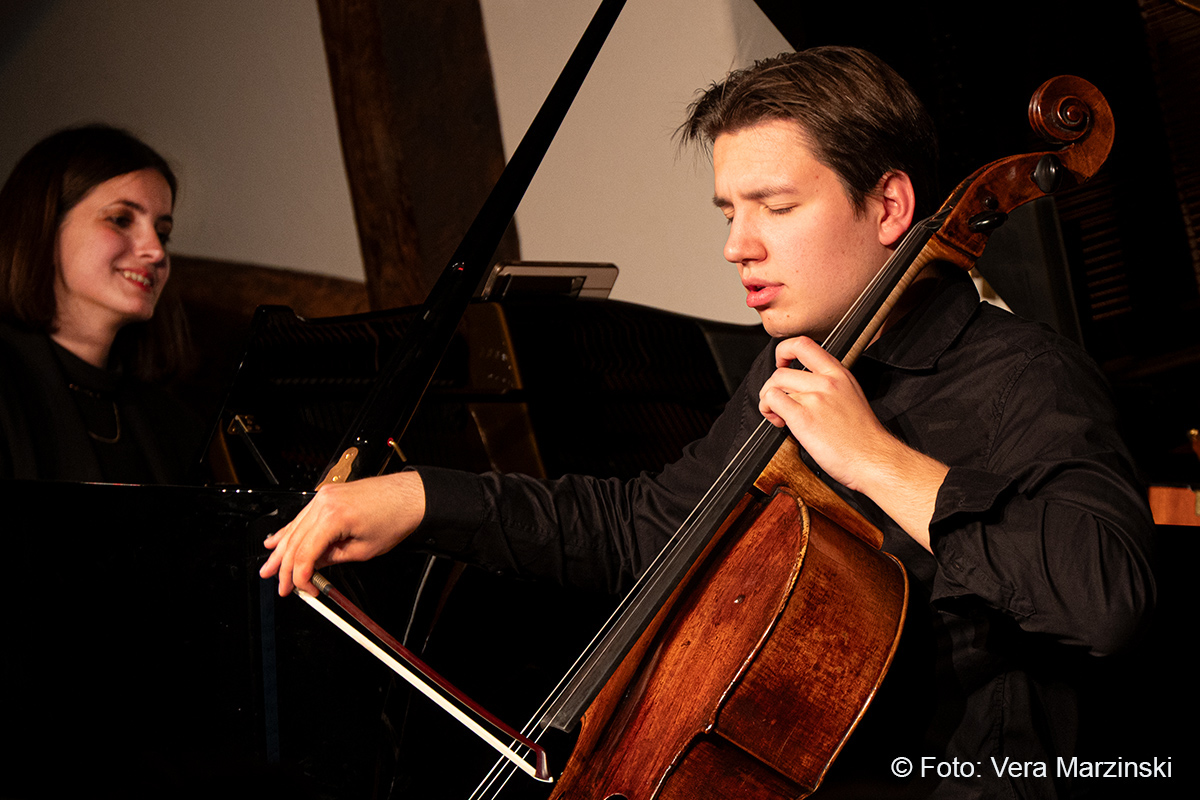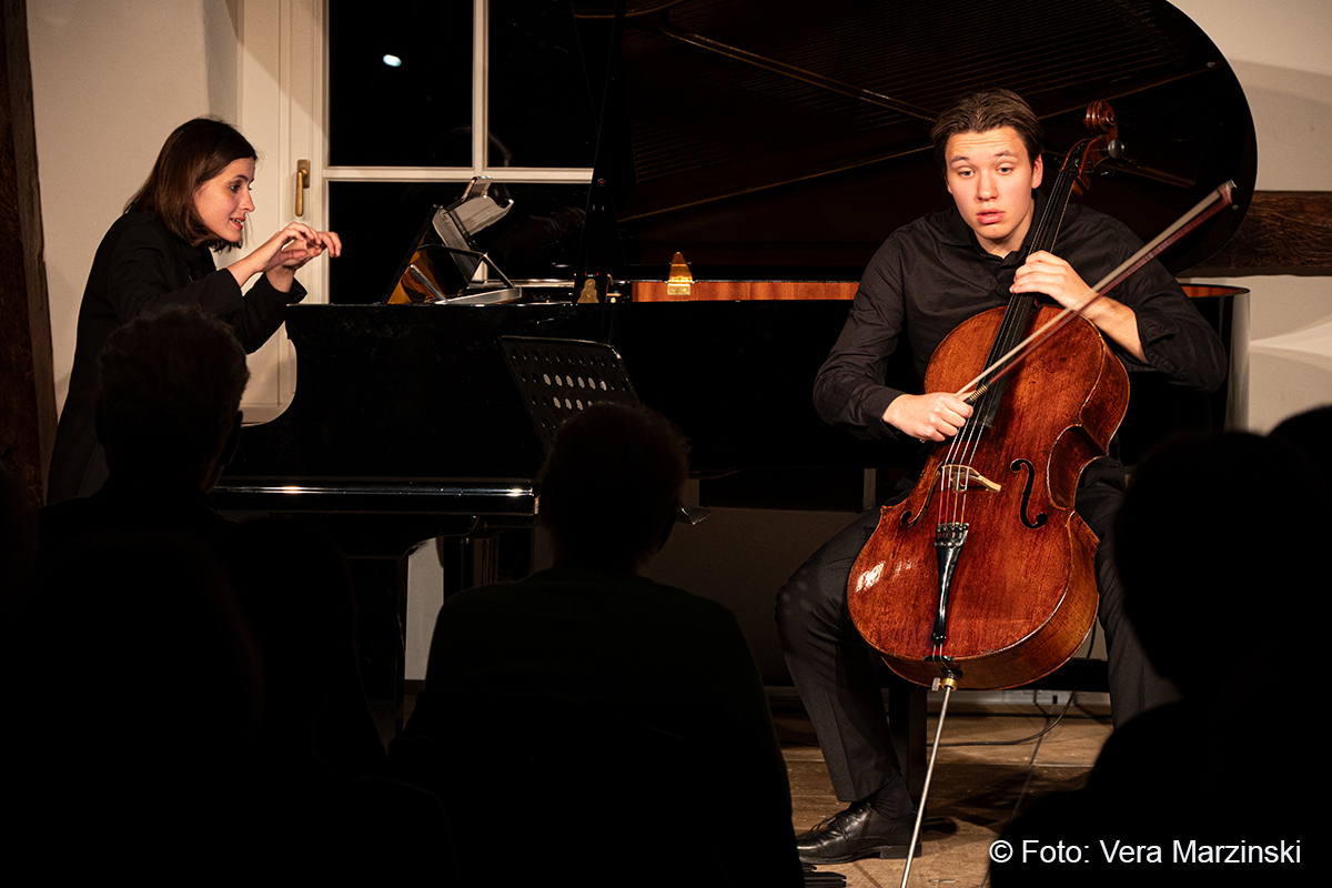 Dina Ivanova wurde 1994 im russischen Rjasan geboren, studierte unter anderem an der Zentralen Musikschule in Moskau und am Tschaikowsky-Konservatorium - seit 2022 bei Kirill Gerstein in Berlin. Sie gewann zahlreiche Auszeichnungen, darunter den 2. Preis beim Liszt-Wettbewerb in Weimar und 2023 den ersten Preis beim Domenico Scarlatti Wettbewerb und dem Chopin-Preis in Rom. 2021 erhielt sie ein Stipendium der Carl-Bechstein-Stiftung. Ebenfalls ein Stipendium hat Michael Wehrmeyer - in der Saison 2024/2025 wurde er in die Bundesauswahl „Konzerte Junger Künstler“ des Deutschen Musikwettbewerbs aufgenommen. Bereits mit fünf Jahren begann er das Cellospiel und absolvierte das Jungstudium